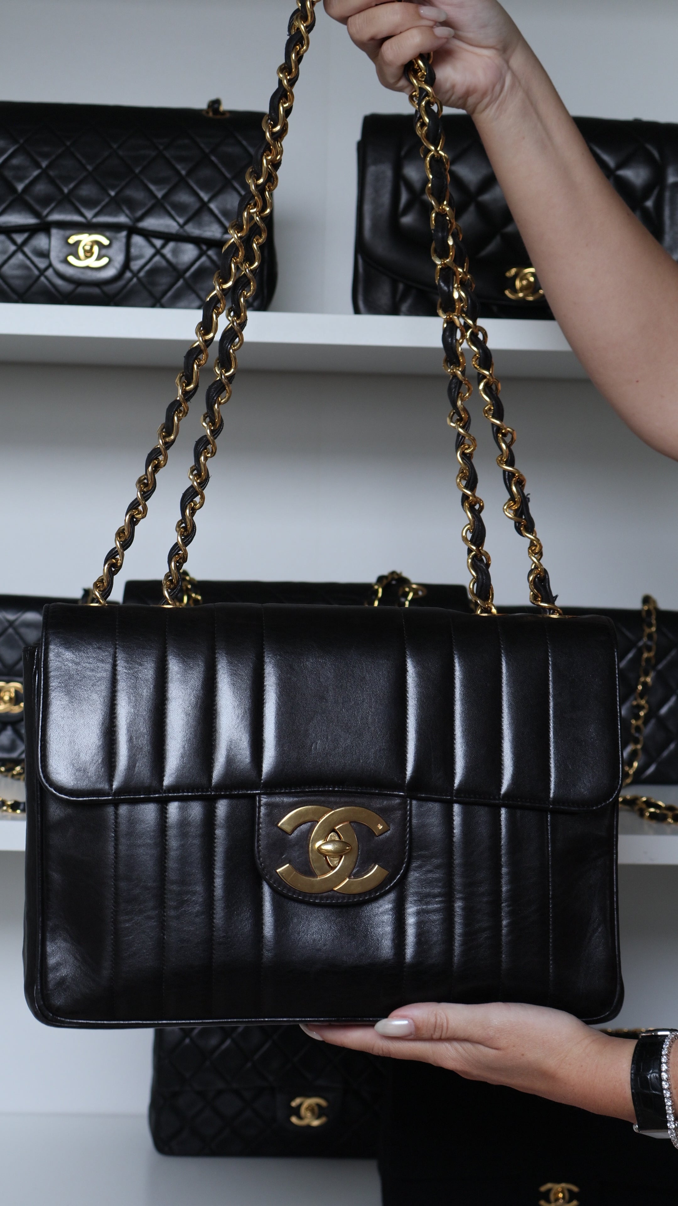 Jumbo is back! The latest collections from the most desired brands, including Chanel, are once again embracing jumbo sizes. And this icon is truly one of our favorites, thanks to its unique vertical striped design. A stunning Chanel Jumbo with 24K gold-plated hardware, in excellent vintage condition.