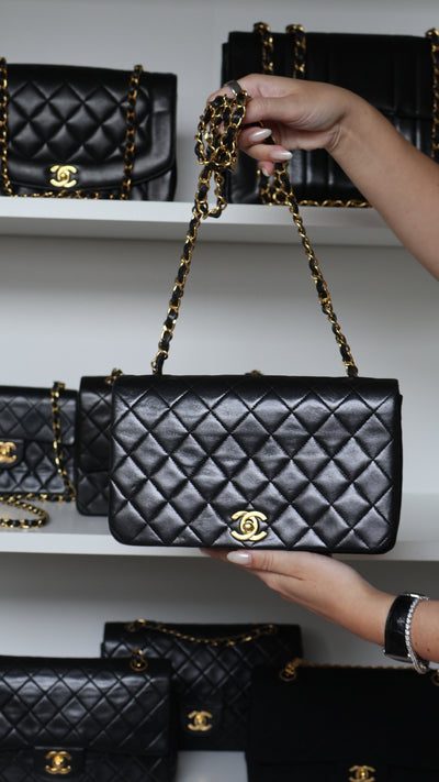 Met dit model, maak je nooit een verkeerde keuze! De Chanel Full Flap Turn Lock in zwart lamsleer met 24K vergulde hardware. De conditie van deze tas is nog zeer mooi, zo zien we ze niet vaak. Deze tas is ook perfect crossbody te dragen. Is deze icon binnenkort van jou?